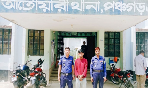 পঞ্চগড়ের আটোয়ারী থানা পুলিশ মাদক বিরোধী অভিযান পরিচালনা করে ১১ পিস ইয়াবা ট্যাবলেটসহ আসিফ (১৯) নামের এক যুবককে আটক করেছে। আটককৃত যুবক উপজেলার ছোটদাপ গ্রামের মোঃ হুমায়ুন এর ছেলে। পুলিশ জানায়, গোপন সংবাদের ভিত্তিতে আটোয়ারী থানার ওসি মোঃ মতিয়ার রহমানের দিকনির্দেশনায় বুধবার (২৫ মার্চ) সন্ধায় থানা পুলিশের একটি চৌকশ টিম অভিযান পরিচালনা করে ফকিরগঞ্জ বাজারের আবুল হোসেন মার্কেটে ১১ পিস ইয়াবা ট্যাবলেটসহ আসিফকে আটক করতে সক্ষম হয়। এ ব্যাপারে আটোয়ারী থানার ওসি মোঃ মতিয়ার রহমান ইয়াবাসহ যুবক আটকের বিষয়টি সত্যতা নিশ্চিত করে বলেন, আটককৃত যুবকের বিরুদ্ধে মাদকদ্রব্য নিয়ন্ত্রণ আইনে আটোয়ারী থানায় একটি নিয়মিত মামলা রুজু করা হযেছে। মামলা নং- ০৬, তারিখ: ২৫/০৩/২০২৬। তিনি বলেন, এই যুবক ইতপূর্বেও মাদকসহ ডিবি পুলিশের হাতে আটক হয়েছিল।