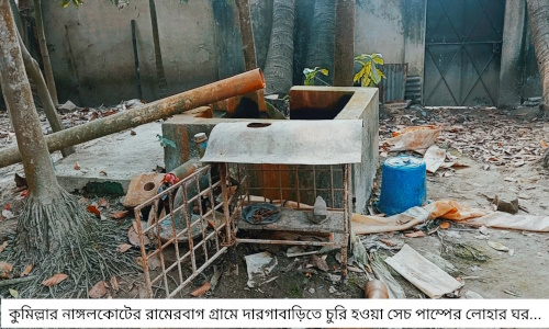 “লোকে বলে দারোগার বাড়ি নাকি চুরি হয়েছে” এমন একটি বাংলা প্রবাদ থাকলেও এবার সত্যিকার অর্থেই ঘটেছে দারগা বাড়িতে চুরির ঘটনা। ঘটনাটি ঘটেছে কুমিল্লার নাঙ্গলকোটের বাঙ্গড্ডা ইউনিয়নের রামেরবাগ গ্রামের অবসরপ্রাপ্ত পুলিশ পরিদর্শক আবুল খায়েরের মালিকানাধীন দারগাবাড়িতে। সম্প্রতি কয়েক দফা চুরি ও ডাকাতির ঘটনা ঘটে ওই পুলিশ ইন্সপেক্টর এর বাড়িতে। চোর দল দারগাবাড়ি থেকে ২টি সেচ পাম্প, ১৬টি কবুতর, পুকুরের মাছ ও কয়েকটি গাছের ডাব ও নারিকেল চুরি করে নিয়ে যায়। এতে স্থানীয় শতাধিক কৃষকের ধানের জমি ক্ষতির মুখে পড়েছে। এছাড়া সম্প্রতি চোরদল পাশ্ববর্তী দৌলতপুর গ্রামে পুলিশ পরিদর্শক আবুল খায়েরের শ্যালক আমেরিকা প্রবাসী মাস্টার ফারুকের বিল্ডিং এর ভাড়াটিয়া রোকেয়া বেগমের পরিবারের ৬টি মোবাইল ও টর্চ লাইট নিয়ে যায় এবং চেহরিয়া গ্রামের সারোয়ার আলমের একটি সেচ পাম্প নিয়ে যায়। এদিকে দৌলতপুর গ্রামের পল্লী চিকিৎসক আব্দুল মতিনের ফার্মেসি থেকে ফ্রিজের কম্প্রেসার, ঔষধ, নেবুলাইজার মেশিন ও ওয়াইফাই রাউটার-সহ বিভিন্ন মালামাল চুরির ঘটনায় নাঙ্গলকোট থানায় লিখিত অভিযোগ করলেও পুলিশ কোন ব্যবস্থা গ্রহণ করেনি বলে দাবি ভুক্তভোগীর। দারগাবাড়িতে চুরির ঘটনায় সোমবার অবসরপ্রাপ্ত পুলিশ পরিদর্শক আবুল খায়ের বাদী হয়ে নাঙ্গলকোট থানায় লিখিত অভিযোগ দায়ের করেন। পরে মঙ্গলবার বিকালে নাঙ্গলকোট থানা সহকারী উপ-পরিদর্শক অসিম রায় সঙ্গীয় ফোর্স ঘটনাস্থল পরিদর্শন করেন।