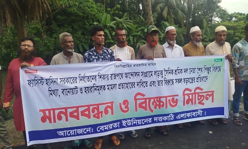 এলাকাবাসী আরো জানান, পিঞ্জু শেখ শ্রমিক দল নেতা হিসেবে এলাকায় সাধারণ মানুষের পাশে থেকে দীর্ঘদিন কাজ করে যাচ্ছে। তার জনপ্রিয়তায় ঈর্ষান্বিত  হয়ে একটি মহল তাকে সামাজিকভাবে হেয় করতে এ মিথ্যা মামলা প্রদান করেছে। এ মামলা করে ষড়যন্ত্রকারীরা এলাকায় লুটপাট শুরু করেছে। তাই প্রশাসনের পাশাপাশি জেলার ঊর্ধ্বতন নেতৃবৃন্দর সহযোগিতা কামনা করেন মানববন্ধনে অংশগ্রহণকারীরা।