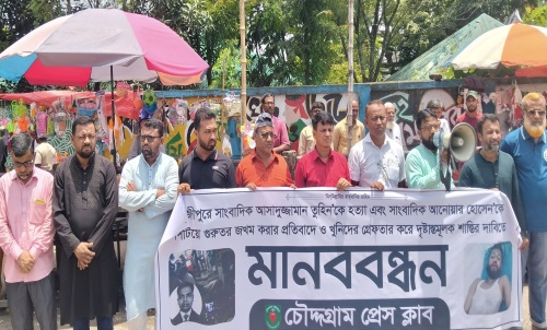 • সাংবাদিক আসাদুজ্জামান তুহিন’কে কুপিয়ে হত্যার প্রতিবাদে চৌদ্দগ্রাম প্রেস ক্লাবের মানববন্ধন