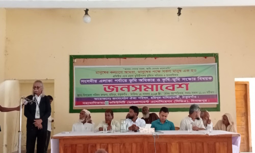 ঠাকুরগাঁওয়ের হরিপুরে ভূমি অধিকার ও কৃষি-ভূমি সংস্কার এ দাবিতে ভূমিহীন জনসংগঠন ঐক্য পরিষদের জনসমাবেশ অনুষ্ঠিত হয়েছে। গতকাল বৃহস্পতিবার সকাল সাড়ে ১১টায় হরিপুর- বালিয়াডাঙ্গী সংসদীয় এলাকার ভূমিহীন জনসংগঠন ঐক্য পরিষদের আয়োজনে উপজেলা পরিষদের হলরুমে সংগঠনের সভাপতি মুনিরুল ইসলামের সভাপতিত্বে সমাবেশ অনুষ্ঠিত হয়। এতে রক্তব্য রাখেন হরিপুর উপজেলা অতিরিক্ত কৃষি অফিসার মানুষ কুমার, সিডিএ নির্বাহী পরিচালক শাহই মবিন জিন্না, মাঠ সমন্বয়কারী জাহিদুর রহমান, হরিপুর সদর ইউনিয়ন চেয়ারম্যান রফিকুল ইসলাম, উপজেলা ভূমিহীন সমন্বয় পরিষদের সভাপতি মোবারক আলী ও তরিকুল ইসলাম প্রমুখ। সমাবেশে ৮২টি ভূমিহীন জনসংগঠনের ৫ শতাধিক সদস্য উস্থিত ছিলেন। সমাবেশ শেষে উপজেলা নির্বাহী অফিসারের নিকট ১৩ দফা দাবী সম্মিলিত একটি স্মারকলিপি দিয়েছেন।