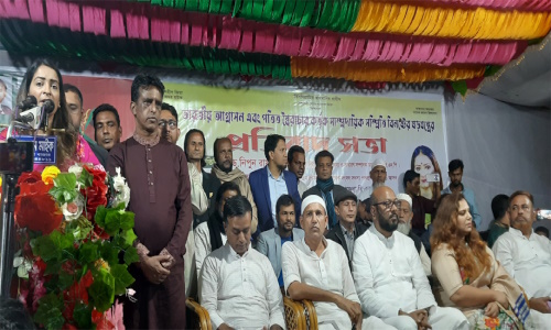 গোলাপগঞ্জে বিএনপির উদ্যোগে ভারতীয় আগ্রাসন এবং পতিত সৈরাচার কর্তৃক সাম্প্রদায়িক সম্প্রতি বিনিষ্টের যড়যন্ত্রে প্রতিবাদ সভা অনুষ্ঠিত হয়েছে। শুক্রবার বাদ আসর উপজেলার ঢাকাদক্ষিন বাজারে গোলাপগঞ্জ উপজেলা বিএনপির সভাপতি নুমান উদ্দিন মুরাদের সভাপতিত্বে প্রতিবাদ সভায় প্রধান অতিথির বক্তব্য রাখেন কেন্দ্রীয় বিএনপির নির্বাহী কমিটির সদস্য ঢাকা জেলা বিএনপির সাধারণ সম্পাদক এড. নিপুন রায়।