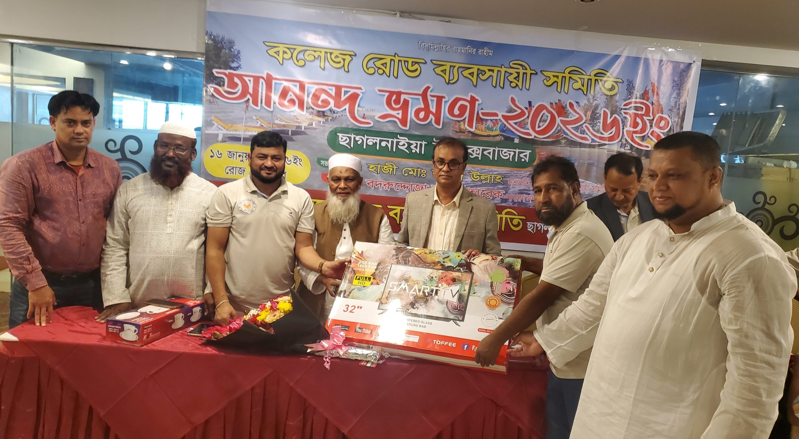 ব্যাপক উৎসব উদ্দীপনার মধ্যদিয়ে ছাগলনাইয়া সিএনজি শো-রুম মালিক সমিতি ও কলেজ রোড় ব্যবসায়ী সমিতির আনন্দ ভ্রমণ ২০২৬ সম্পন্ন হয়। গত শুক্রবার (১৭ জানুয়ারি) রাতে দুই শতাধিক সদস্যের বহর নিয়ে পৃথক দুই সমিতির নেতৃবৃন্দ ছাগলনাইয়া হতে কক্সবাজার গমন করেন। কক্সবাজার ও আশপাশের দর্শনীয় স্থান গুলো পরিদর্শন শেষে হোটেল কক্স’স ইনে র্যাফেল ড্র ও পুরস্কার বিতরণী অনুষ্ঠান সম্পন্ন করে গতকাল রবিবার কলেজ রোড় ব্যবসায়ী সমিতির ব্যবসায়ীরা ছাগলনাইয়ায় ফিরে আসেন। র্যাফেল ড্র’র আয়োজনে ২২ জনকে আকর্ষণীয় পুরস্কার প্রদান করা হয়। কলেজ রোড় ব্যবসাী সমিতির আনন্দ ভ্রমণের সমাপনী অনুষ্ঠানে সমিতির সভাপতি মোঃ শহিদ উল্লাহ সভাপতিত্বে ও সাধারণ সম্পাদক বদরুদ্দোজা ভুঁইয়া তারেক’র সঞ্চালনায় অতিথিদের মাঝে ছাগলনাইয়া উপজেলা পরিষদের সাবেক ভাইস চেয়ারম্যান আলহাজ্ব আবু আহমেদ ভূঁইয়া, ছাগলনাইয়া পৌর বিএনপির সিনিয়র যুগ্ম আহবায়ক মনির আহাম্মদ খোকন, ছাগলনাইয়া বিআরডিবির পরিচালক মাওলানা সাহাব উদ্দিন, কলেজ ব্যবসায়ী সমিতির উপদেষ্টা আবু তাহের বাবুল সহ ব্যবসায়ী সৈয়দ নজরুল ইসলাম, কলেজ রোড় ব্যবসায়ী সমিতির সাংগঠনিক সম্পাদক শহীদুল ইসলাম মজুমদার শাহীন, কোষাধ্যক্ষ সামছুল হুদা, ছাগলনাইয়া ব্লাড ডোনার্স ক্লাবের সভাপতি জিয়াউল হক বাবলু সহ অন্যন্য সদস্য বৃন্দ উপস্থিত ছিলেন।