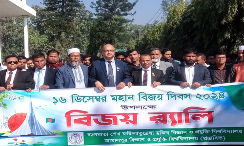 নানা কর্মসূচির মধ্য দিয়ে বঙ্গমাতা শেখ ফজিলাতুন্নেছা মুজিব বিজ্ঞান ও প্রযুক্তি বিশ্ববিদ্যালয়ে (বশেফমুবিপ্রবি) আজ ১৬ ডিসেম্বর ২০২৪ সোমবার মহান বিজয় দিবস উদ্যাপিত হয়েছে।