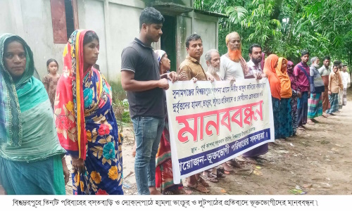 শনিবার সকাল ১১টায় ভূক্তভোগী পরিবারের সদস্যদের আয়োজনে পূর্বকাপনা গ্রামে এ মানববন্ধন অনুষ্ঠিত হয়। এতে শতাধিক নারীপূরুষ অংশগ্রহন করেন।
