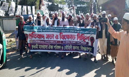 সুনামগঞ্জ জেলার বিশ্বম্ভব পুর উপজেলায় সাদপন্থী তাবলীগ জামাতের অপকর্মের বিরুদ্ধে বিশ্বম্ভরপুর কওমী মাদ্রাসা ঐক্য পরিষদ ও তৌহিদীর জনতার ব্যানারে প্রতিবাদ সভা ও বিক্ষোভ মিছিল অনুষ্ঠিত হয়েছে।