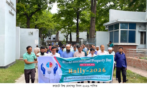 সচেতনতামূলক নানা কর্মসূচির মধ্য দিয়ে রাজশাহী প্রকৌশল ও প্রযুক্তি বিশ্ববিদ্যালয়ে (রুয়েট) বিশ্ব মেধাস্বত্ব দিবস ২০২৬ উদযাপিত হয়েছে। দিবসটি উপলক্ষ্যে রুয়েট প্রাঙ্গণে এক বর্ণাঢ্য র‌্যালির আয়োজন করা হয়। রবিবার (২৬ এপ্রিল) সকাল ১১টায় র‌্যালিটি প্রশাসনিক ভবনের সামনে থেকে শুরু হয়ে ক্যাম্পাসের প্রধান সড়ক প্রদক্ষিণ করে।