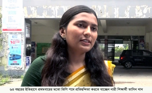 ৬৩ বছরের ইতিহাসে প্রথমবারের মতো ভিপি পদে প্রতিদ্বন্দিতা করতে যাচ্ছেন নারী শিক্ষার্থী তাসিন খান